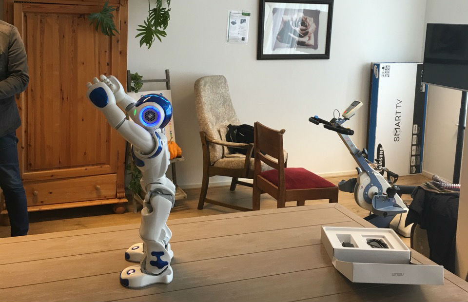 Zorgrobot ZORA was donderdag 26 mei op bezoek bij Convivio. Het robotje is een Belgisch initiatief van softwarebedrijf QBMT en is bedoeld ter ondersteuning van de ouderenzorg. ZORA is 57 centimeter hoog en kan onder meer helpen met revalidatieoefeningen.