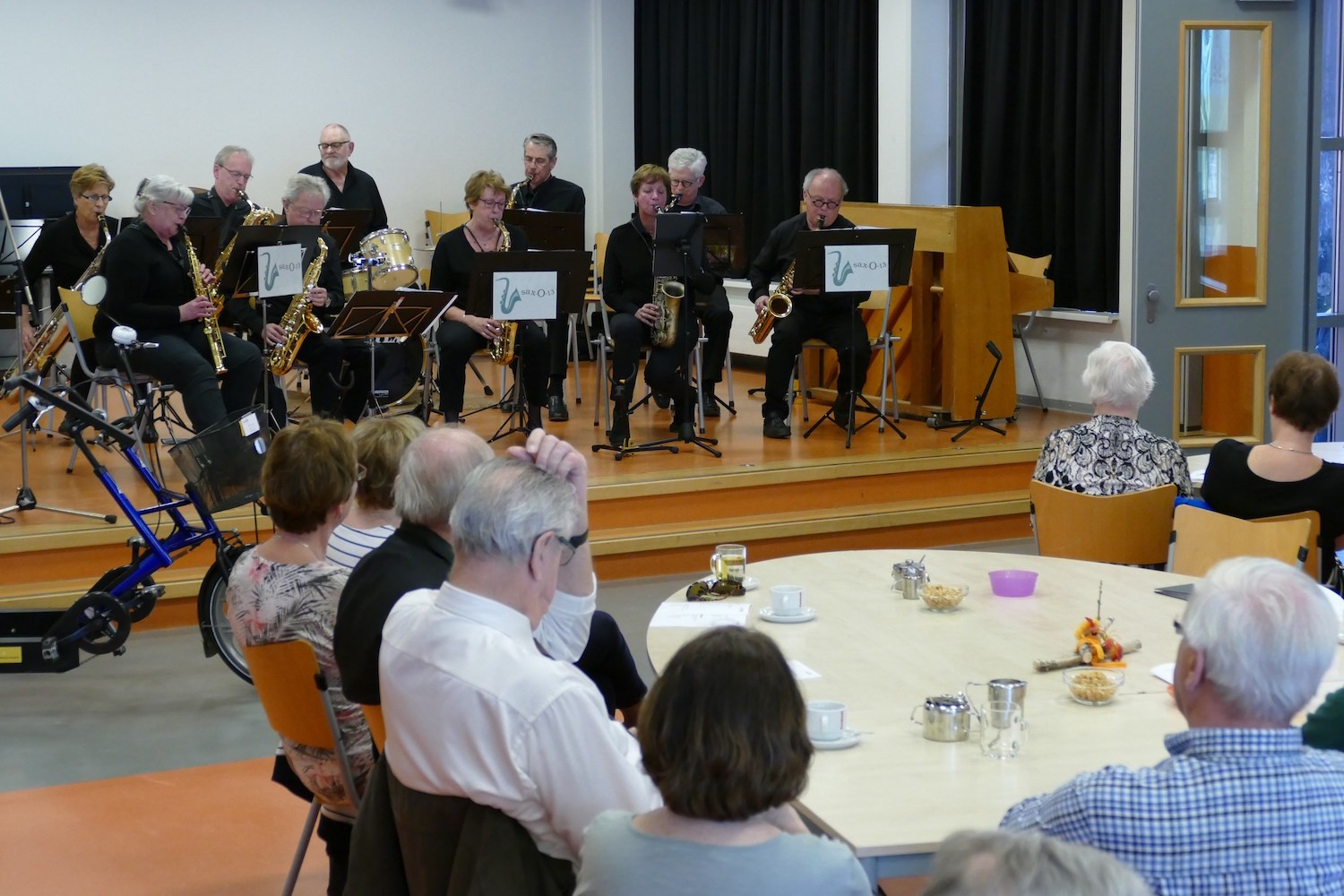 Het benefietconcert heeft voor een enorm gezellige en muzikaal fraaie zondagmiddag gezorgd in de aula van basisschool de Bodde in Tilburg. De aftrap was voor de saxofonisten van Sax-O-13. Zij zetten de toon en creëerden een goede sfeer met swingende klassiekers en evergreens. Daarna was het de eer aan koor L’Esprit, waarvan de leden voor de nodige meezingers zorgde. De finale was in handen van de muzikanten van de Big-T-band. Zij deden hun bandnaam eer aan met een krachtig en harmonieus optreden.