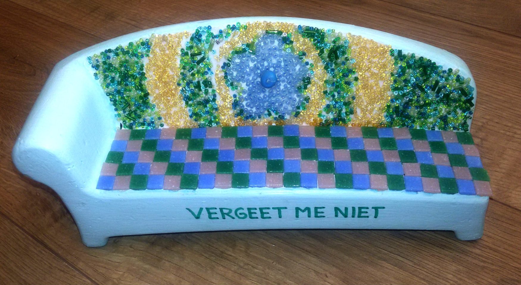 Ook zijn er door vrijwilligers verschillende bankjes gemozaïekt én verkocht voor de realisatie van het kunstproject. Wilt u ook uw steentje bijdragen? Meldt u dan aan om te helpen bij het mozaïeken, koop een gemozaïekt benkske, verwerf donateurs en sponsoren of steun het project met een financiële bijdrage via onderstaand banknummer.